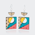 Vibrant geometric earrings with intricate multi-colour patterns and sophisticated design details. Contemporary style with striking visual impact.