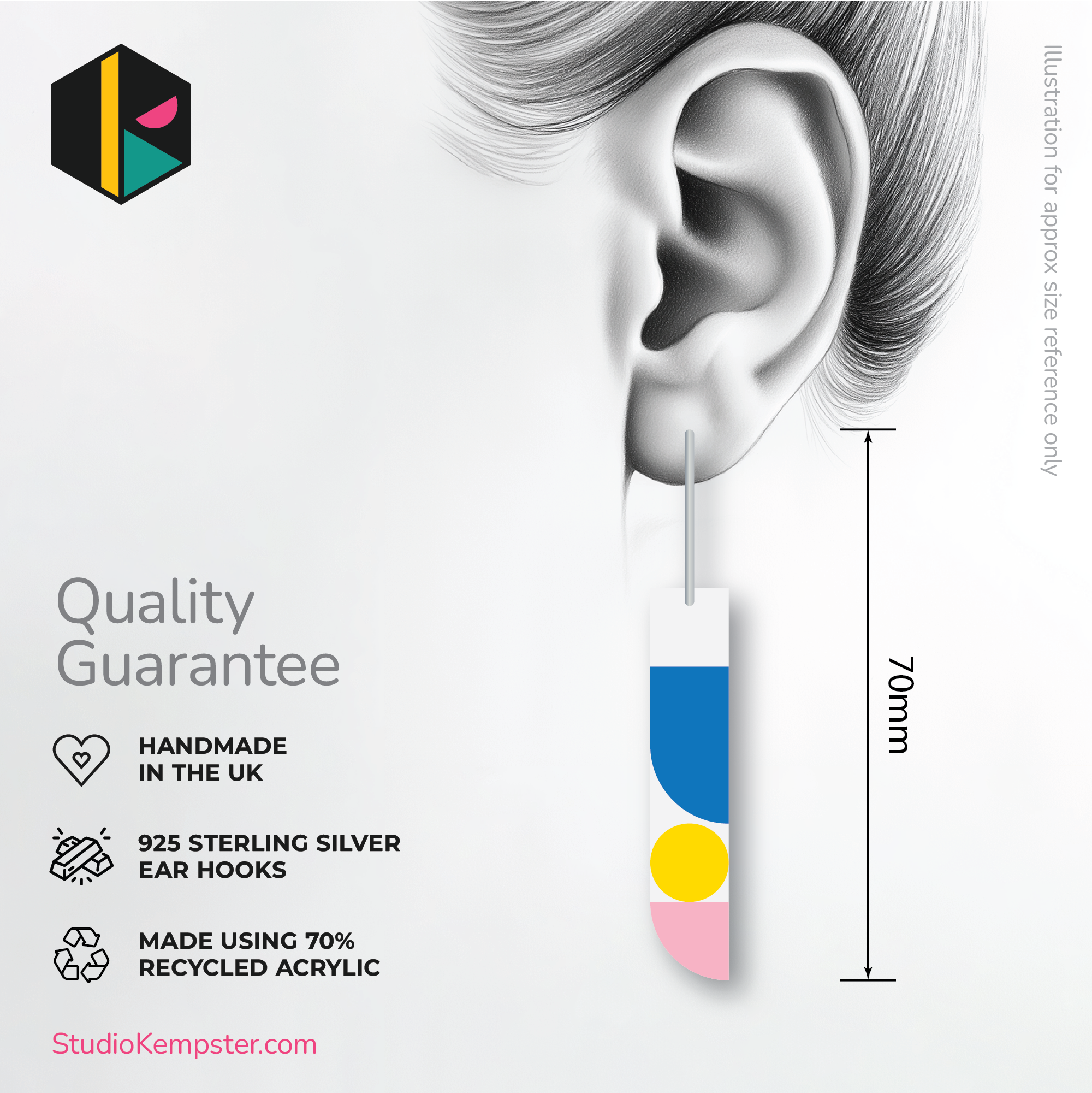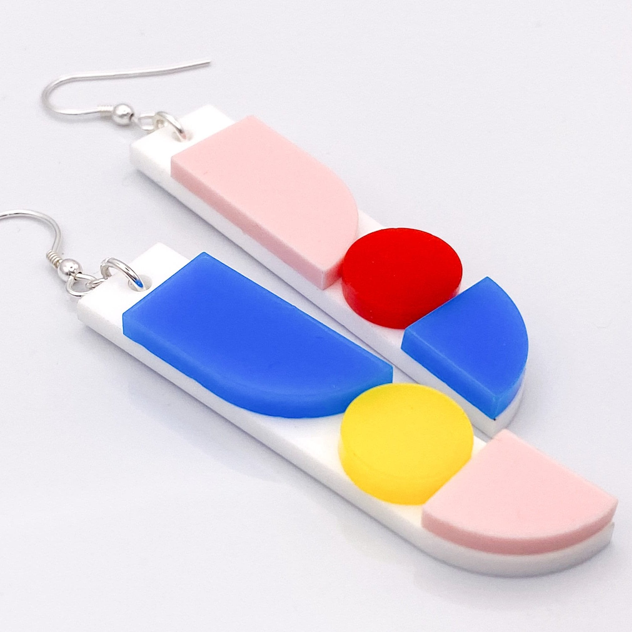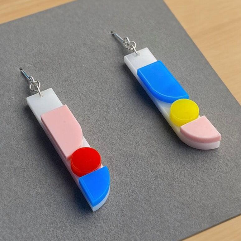Elegant geometric earrings in colourful tones with clean lines and balanced proportions. Inspired by Bauhaus principles with contemporary palette.