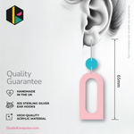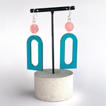 Sophisticated arch-shaped earrings in rich colours with clean geometric lines and modern proportions. Elegant design with contemporary appeal.